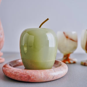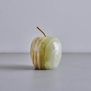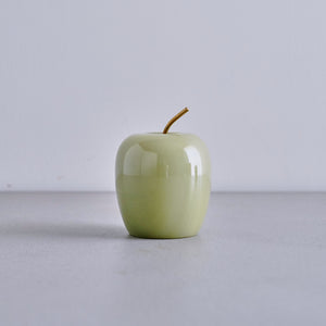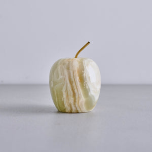 淡いライトグリーンを基調としたつるりとした石でできています。全体がライトグリーンで色づいた青リンゴのようなものから、ミルクのように柔らかなホワイトと共に美しい模様を浮かばせるものまで、ひとつひとつの石に個性が見られます。真鍮でできた軸がきらりと光を反射させるのもとても魅力的です。インテリアのワンポイントとなるディスプレイやペーパーウェイトにおすすめです。
