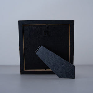 ブラウンの額には美しい木目の模様が浮かんでいます。サイドは光沢のあるブラックで塗り込められており、どこかシックな印象が感じられます。装飾的すぎない額なので、どんな写真や絵を入れても合いそうです。正方形のシルエットもポイントです。