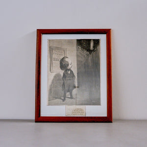 ブラウンの木の額に入っているのは、どこかユーモラスな男性が描かれた絵。元の絵は、19世紀に活躍した風刺画家であるHonore Daumier(オノレ・ドーミエ)によって版画技法で描かれたものと思われます。