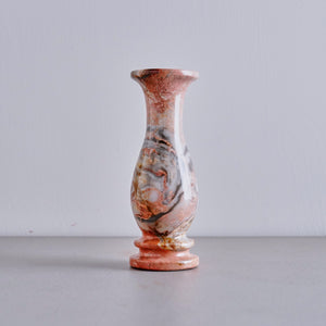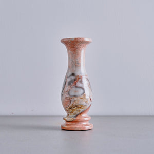 赤みのあるブラウンカラーと細身の壺型をした形状がレトロな雰囲気を醸し出します。また表面の複雑な模様や滑らかな手触りは石ならではの魅力です。重厚感ある色味とデザインからはどことなく中華風な雰囲気も感じられます。落ち着きのあるデザインのため、様々なタイプのインテリアに馴染みそうです。